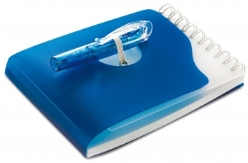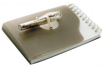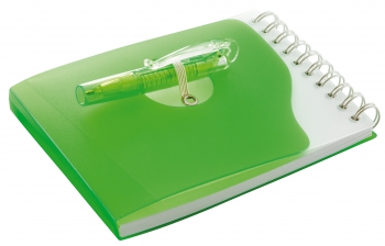 Libreta de Apuntes 68 hojas, con BolÃgrafo 8 cm. incluido. Tapa y contratapa plásticas rÃgidas en colores empavonados.(1)
