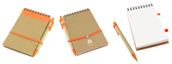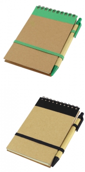 Libreta Ecológica con tapas de cartón reciclado, 70 hojas interiores blancas (croqueras). Incluye cierre elasticado de color y bolÃgrafo ecológico al tono.(1)