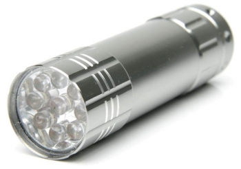 Súper práctica, liviana y portátil linterna de 9 LEDS de alto brillo.Botón de encendido/apagado en su parte trasera.Construida en aluminio.Es de bajo consumo y gran rendimiento.Alimentación: 3 pilas AAA (No incluidas)