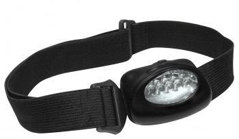 Linterna para cabeza con 5 luces LED blancas, switch de 3 funciones secuenciales y cintillo elástico negro ajustable. Pilas: 3 pilas AAA (no incluidas)(1)