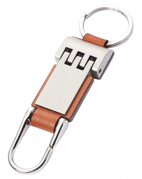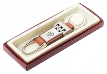 Llavero Metal-Cuero modelo \"Premium\". Presentación en estuche laminado café con cuna aterciopelada.(1)