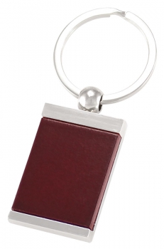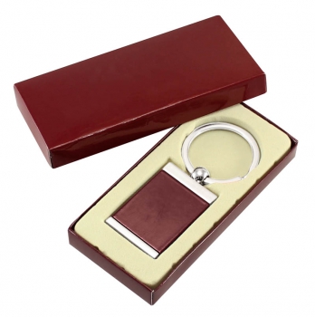 Llavero Metálico con cuerpo de madera barnizada café moro. Presentación en estuche laminado café con cuna aterciopelada.(1)