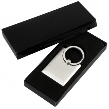 Llavero Metálico satinado, modelo \"Bag\". Presentación en estuche laminado negro con cuna aterciopelada.(1)