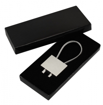 Llavero Metálico modelo \"Candado\". Presentación en estuche laminado negro con cuna aterciopelada.(1)