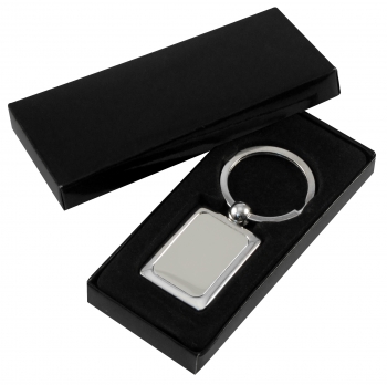 Llavero Metálico Cuadrado. Presentación en estuche laminado negro con cuna aterciopelada.(1)