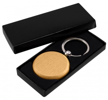 Llavero Redondo de Madera de Bamboo. Presentación en estuche laminado negro con cuna aterciopelada.(1)