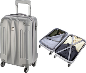 37 x 56 x 23,5 cm Plástico. Con 4 ruedas. Candado incluido con combinación. Interior con 2 divisiones. Asa y mango extensible. Se puede grabar en tapa desmontable (2)