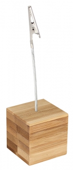 Memo Clip Porta-Tarjetas Metálico con Base Cubo de Madera de Bamboo.(1)