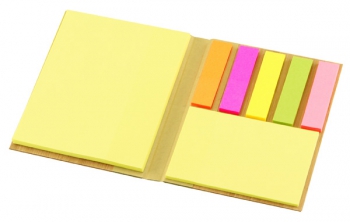 Memo Set con Tapas Duras enchapadas en madera de Bamboo. Incluye 50 post-it amarillos grandes, 25 post-it amarillos medianos y 125 banderitas adhesivas de colores.(1)
