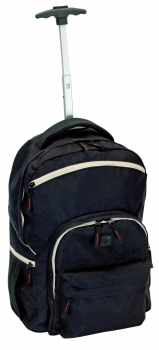 33,5 x 52,5 x 16 cm Modelo ejecutivo. Con ruedas. Manija extensible. 3 bolsillos frontales externos y 2 laterales externos con cierre. Salida para auriculares. Tiras y cubre-cintura acolchados. Bolsillo posterior para guardar correas. Bolsillo inferior-posterior con cubre-ruedas extensible. Mango extensible 52,5 cm.(2)