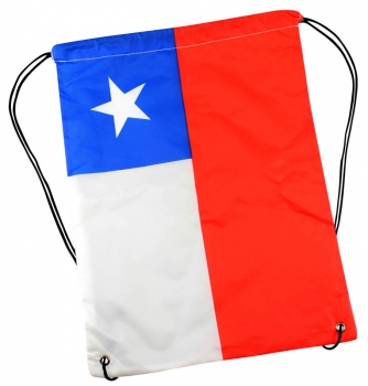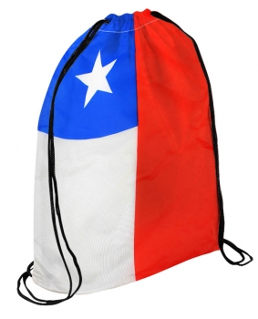 Mochila \"Flag\" de poliéster 210D/PU, tipo Morral. Incluye gráfica de Bandera chilena por el anverso y por el reverso es 100% blanca, ideal para impresión de logo.
