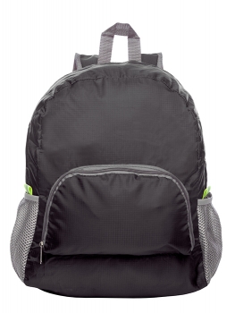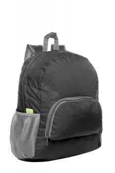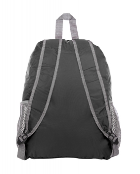 30 x 23 x 40 cm. Capacidad 28 litros aprox. Ripstop 210D . Bolsillos laterales de red en color gris con tiras amarillas reflectivas en ambos lados. Detalles en gris en la manija y el cierre.