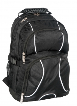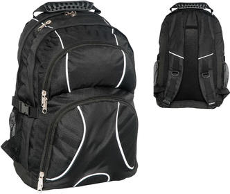 30 x 44,5 x 17 cm 2 compartimentos principales con cierre. 1 bolsillo frontal externo con cierre. Correas regulables. Acolchado. Fácil bordado. Deslizadores de cierre en textil. Interior dividido. POLYESTER 600D.(2)