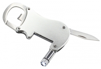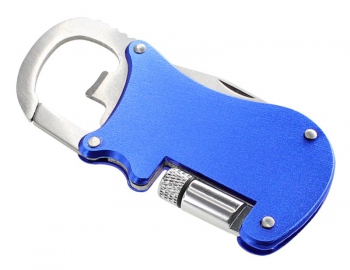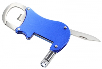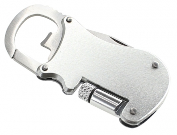 Multiherramienta metálica 4-en-1 con Linterna LED, Navaja, Destapador y Mosquetón.(1)