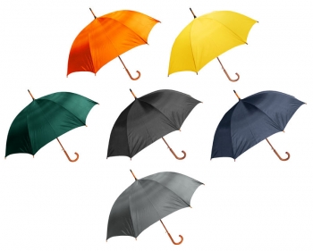 Paraguas ejecutivo con cuerpo y mango curvo de madera barnizada. Varas reforzadas de fibra de vidrio, sistema de apertura automático, 8 cascos tela Nylon 190T. (1)