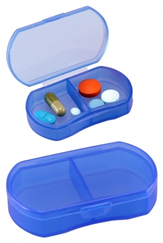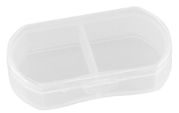Pastillero modelo \"Bizone\" de PVC traslúcido, con 2 compartimentos.