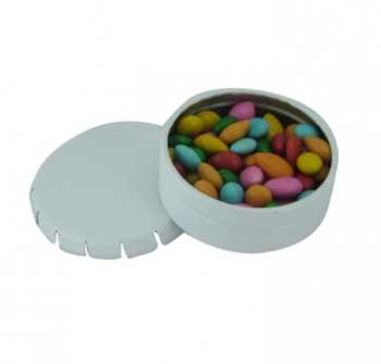 Pastillero promocional, sistema de cierre clic clac, con semillas de sabores.