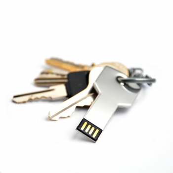 Pendrive de 4 GB de capacidad, con forma de Llave. Presentación en caja plástica traslucida.