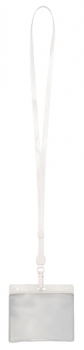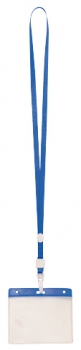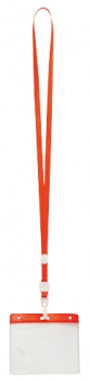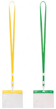 Porta-Credencial de PVC translúcido y banda superior de color, con lanyard para colgar. Para credenciales tamaño Tarjeta de Crédito. Presentación Formato Horizontal.(1)