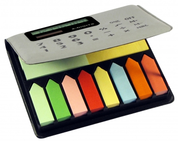 Set porta Post-it y banderitas adhesivas con calculadora solar en tapa plástica.(1)