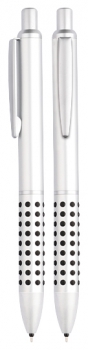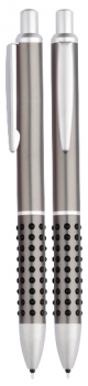 Portaminas metálico satinado modelo \"Caterpillar\", con lunares de goma negra que brindan una suave sensación de masaje dactilar al escribir.(1)