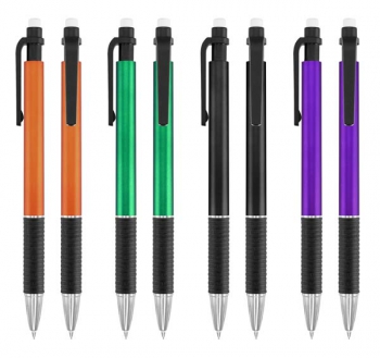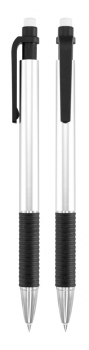 Portaminas \"Mechanical\" con cuerpo de color metalizado y goma de borrar. Contiene mina de 0.5mm