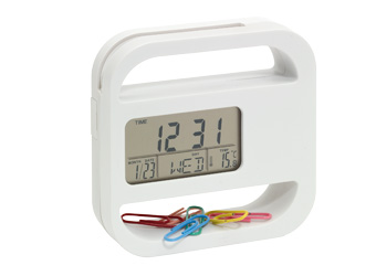 Plástico. Reloj, tarjetero y porta clip. Incluye baterÃa Botón.
