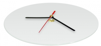 Reloj de Pared de vidrio con cobertura blanca \"Polycoat\" para Sublimación. Tamaño: Ø 20 cm.