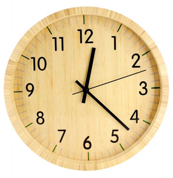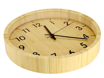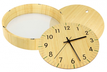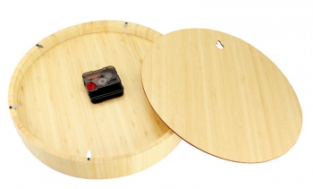 Deluxe Reloj análogo redondo de pared, 100% madera Bamboo. Panel interior desmontable de madera de bamboo, para imprimir logo.