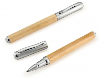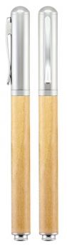Roller Pen Ejecutivo de Madera de Bamboo con tapa metálica satinada, tinta negra.