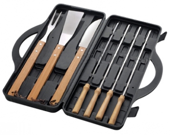 Set de 7 herramientas de BBQ en MaletÃn de plástico duro negro. Con ventana rectangular lisa exterior para aplicar logo.(1)
