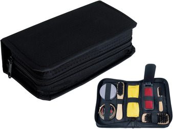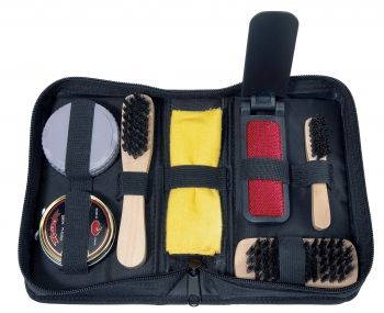 18 x 5 x 10,5 cm Set de 7 piezas: 3 cepillos de madera, 1 cepillo para ropa, lienzo, esponja y caja pequeña con betún incoloro. Estuche con cierre (2)