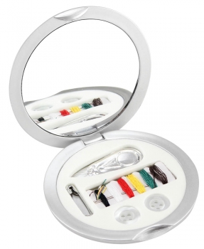 Set de Costura plateado redondo con espejo. Presentación en caja plateada de cartón.(1)