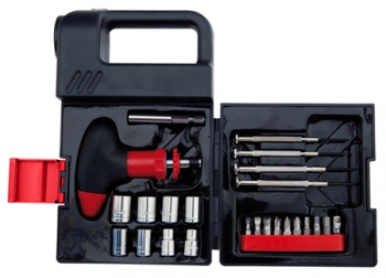 Set de 24 Herramientas modelo \"Lemans\". Incluye Linterna 4 LED, en plástico ABS negro.(1)