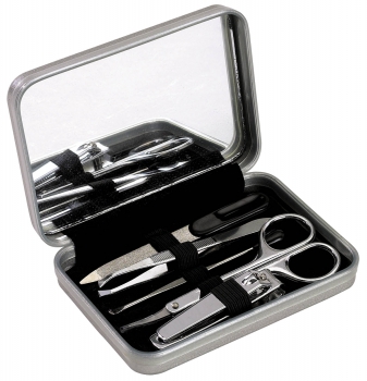 Set de Viaje y Manicure en Caja Metálica con Espejo y cierre imantado.(1)