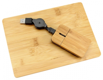 Set USB Mouse óptico + Pad 100% de madera de Bamboo. Incluye cable y conector USB.(1)