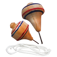 Trompo de madera con colores patriotas, incluye lienza.Grande: 10cm x 6cm