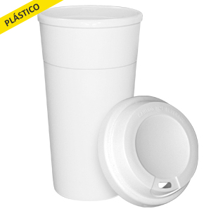 Vaso grande de 480ml. modelo \"Cloud\" de plástico blanco, con tapa rosca de silicona blanca. Presentación en caja de cartón blanco. IMPORTANTE: Vaso NO térmico.